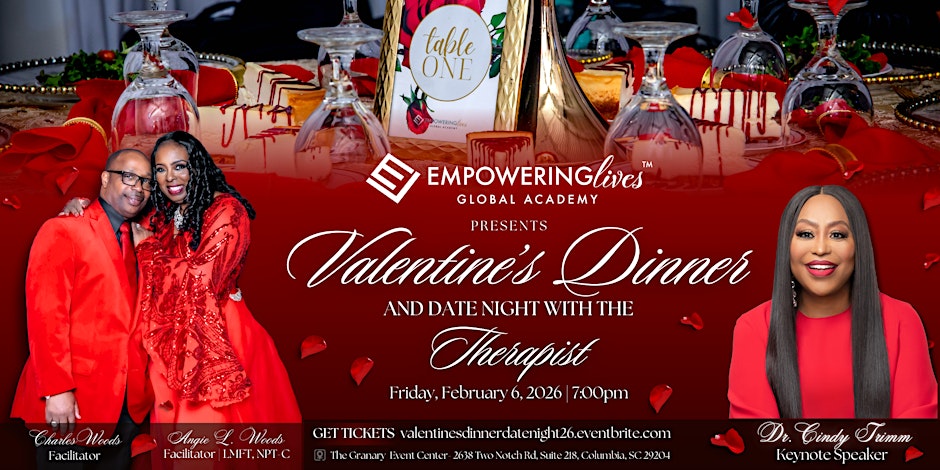 We’re kicking off this mission in Columbia, SC! Join me and my husband, Charles Woods for Valentine’s Dinner Date Night with the Therapist! It will be REAL, RAW & RELEVANT!